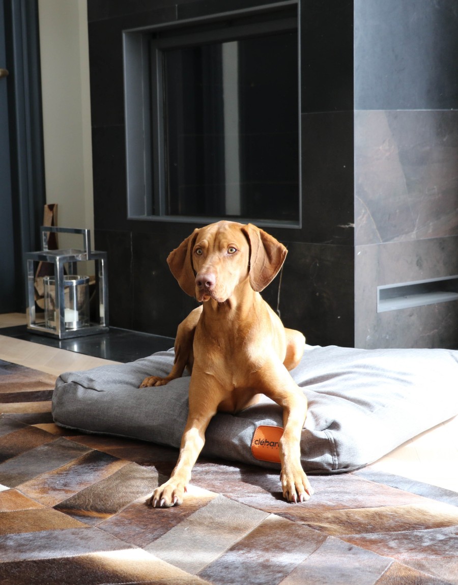 More than a sleek dog basket, the innovative Clébard-concept solution allows the dog to shape his sleeping as he would in nature. `