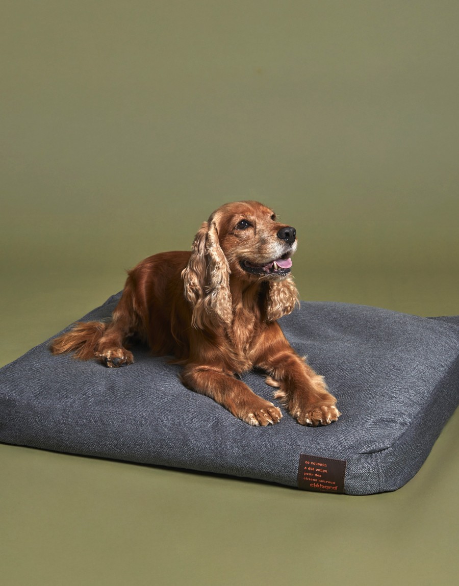 the structure of Clébard-concept dog cushions is soft and fluffy. The dog shapes its bedding by treading on the cushion to create mounds and hollows